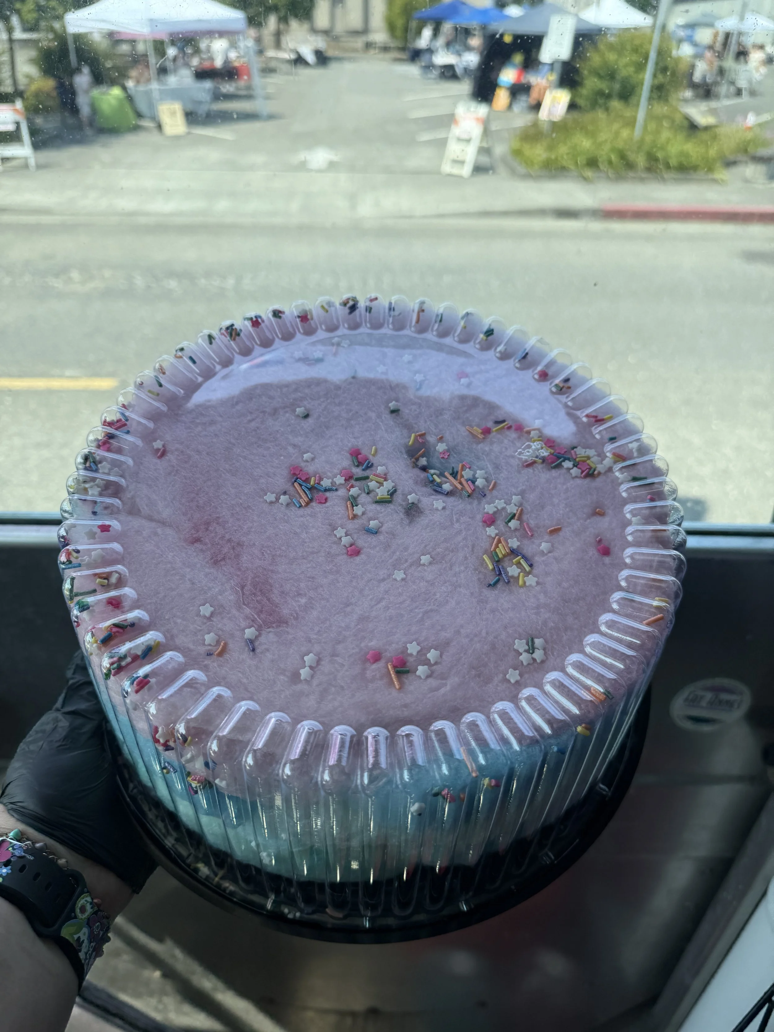 In 2018, I got a wild hair to start a shaved ice and cotton candy truck called Sprinkles Concessions—and I did! You have probably seen my truck at different festivals in Humboldt County. Ever since, I’ve been serving up sweet treats at about 10 local festivals each year here in Humboldt County. Since the truck sits unused in the winter, I began brainstorming new ideas. And in 2025, behold… Sprinkle’d & Fluffed Cotton Candy Cakes were born! I’m fully cottage food permitted and excited to share this fun new way to enjoy cotton candy—and to help make your events truly memorable!